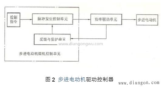 步進電機不能直接連接到工頻交流或直流電源,但需要使用專用的步進電機驅動器,如圖2所示,它由脈沖發生控制裝置,電源驅動器組成。單元,保護單元等在圖中,用虛線包圍的兩個設備可以由微型計算機控制。驅動單元直接連接到步進電動機,并且也可以理解為此處簡要介紹的步進電動機微計算機控制器的電源接口。
