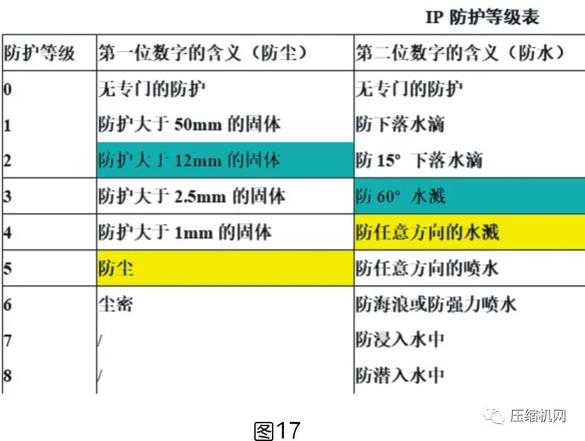 根據IEC 60034-5標準,電動機的防護等級表示防塵、防水以及防碰撞的能力,用字母IP以及后面兩位數字表示。這跟電機的采購成本有關。數字越大,成本越高。