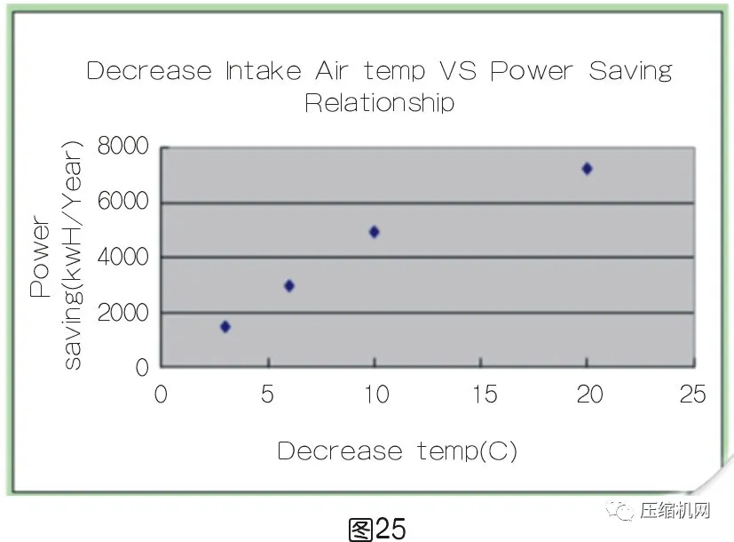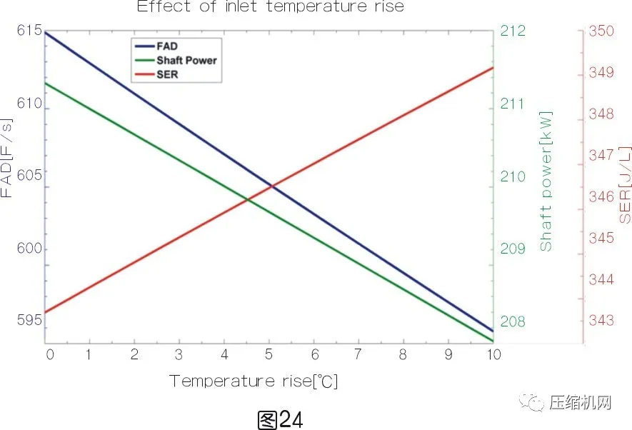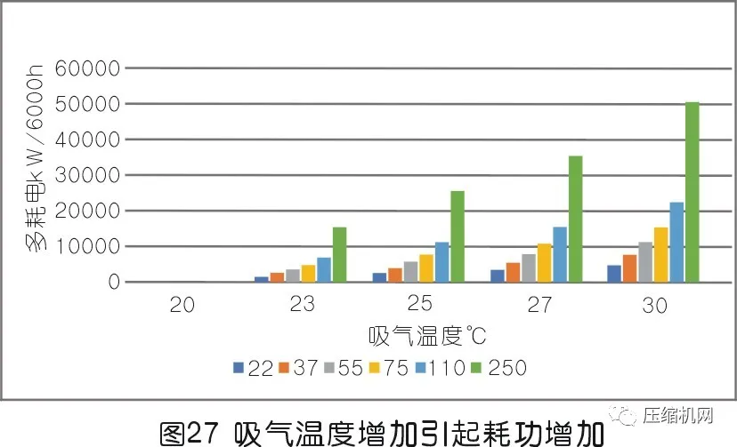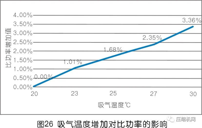 空壓機進氣溫度越高,其耗功也越高;(見圖23)