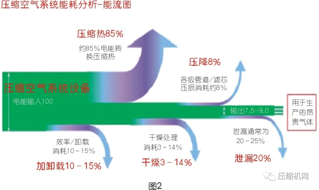 我們來看看壓縮空氣系統的能量流圖(從能量輸入和輸出),如圖2所示。