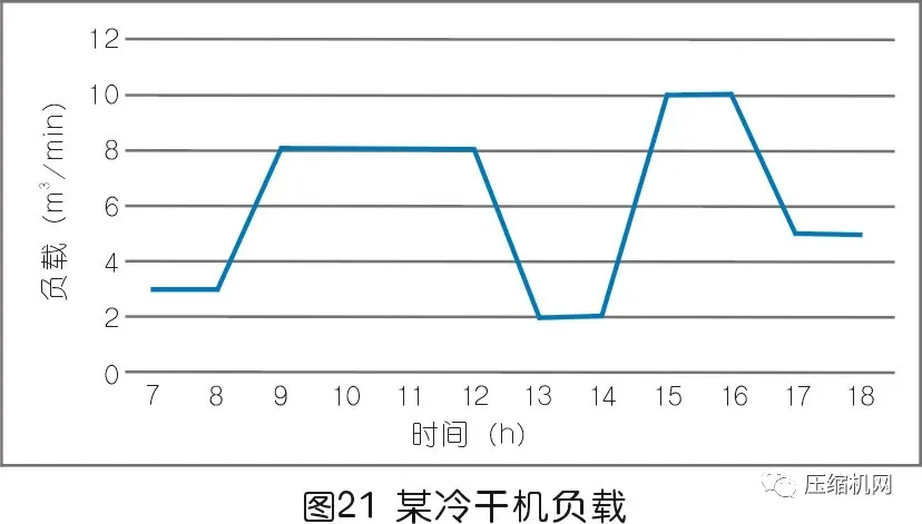 例3,某工廠配置一臺10m3/min冷干機,一天工作的平均負載情況如圖19。