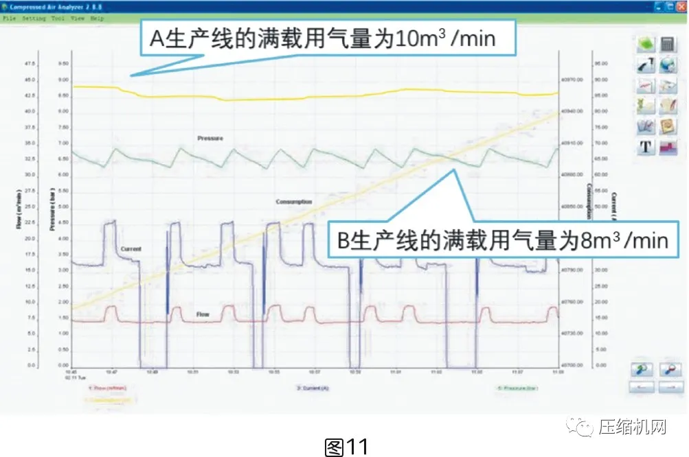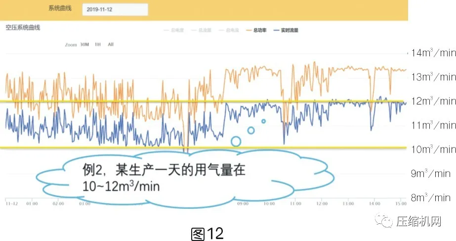 例2,某生產線一天的用氣量在10~12m3/min,見圖12。