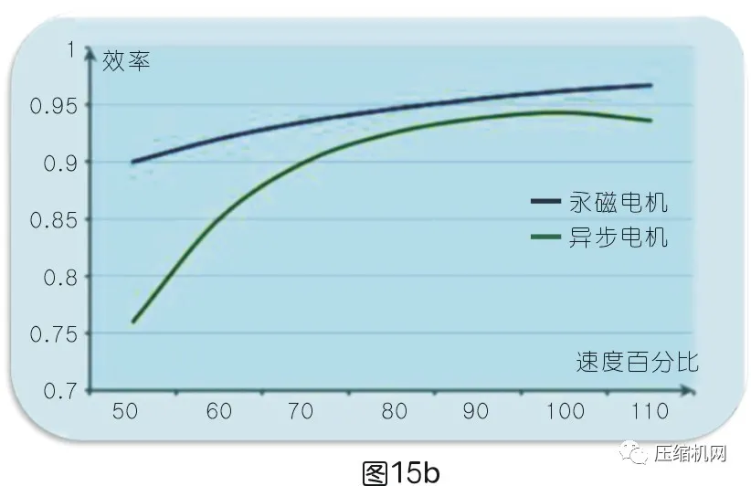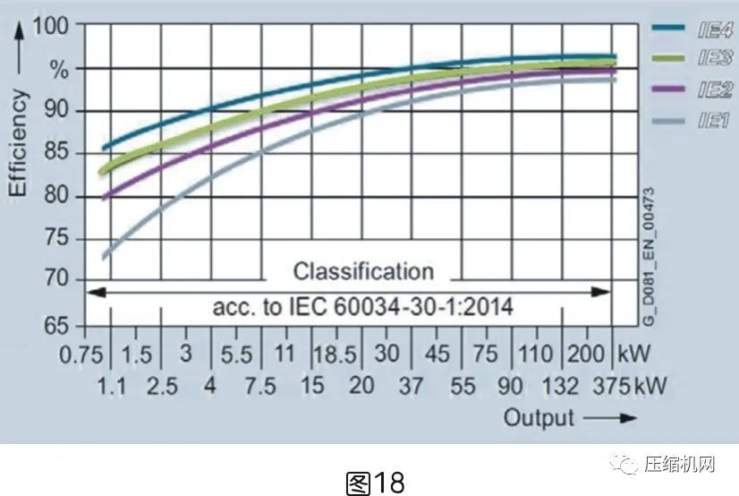 通常工頻空壓機采用三相異步電動機一般為IE3,變頻空壓機采用永磁電機一般為IE4以上;各級效率η相差1~2%;