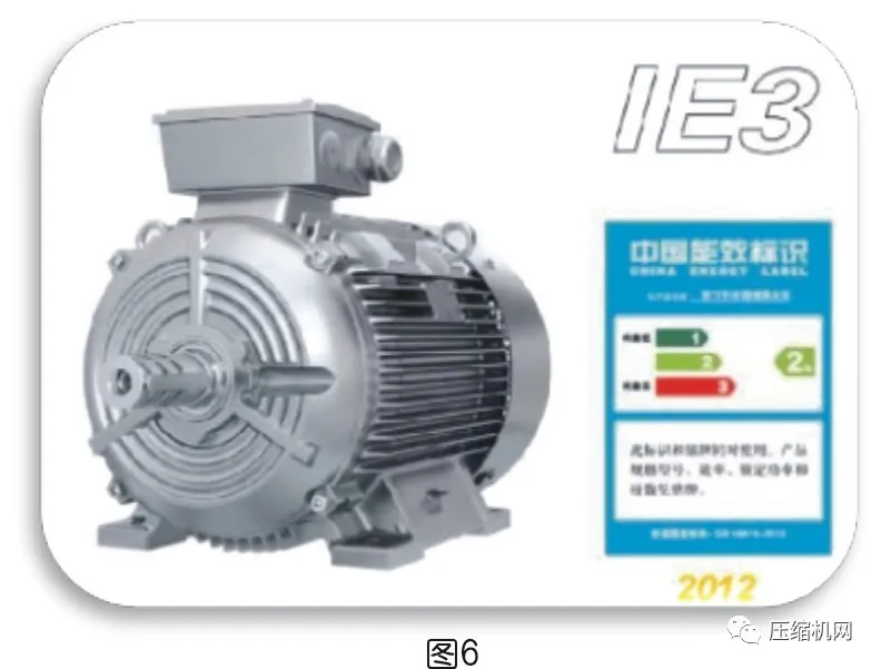 電機作為空壓機的主要輸入動力,其效率對于空壓機節能也是影響很大。工頻和變頻電機的采用,在后面的節能誤區會有詳細描述,圖6。