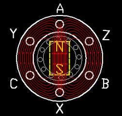 電機的磁路可以形象地表示為一個閉環。在磁路壓降計算中,選擇通過磁極中心的那一條,在磁場分析中,根據磁通密度的大小繪制不同密度的磁力線或磁通密度的云圖。在用來計算磁壓降的閉合磁路中,氣隙占長度的比例很小,但磁壓降幾乎都消耗在地面上,或者說氣隙的大小決定了勵磁安培匝數的大小。